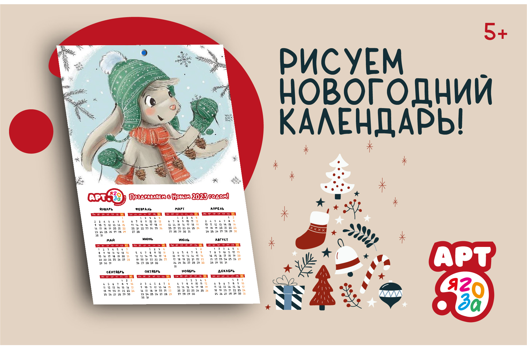 Рисуем новогодний календарь с символом года! Арт.ягоза